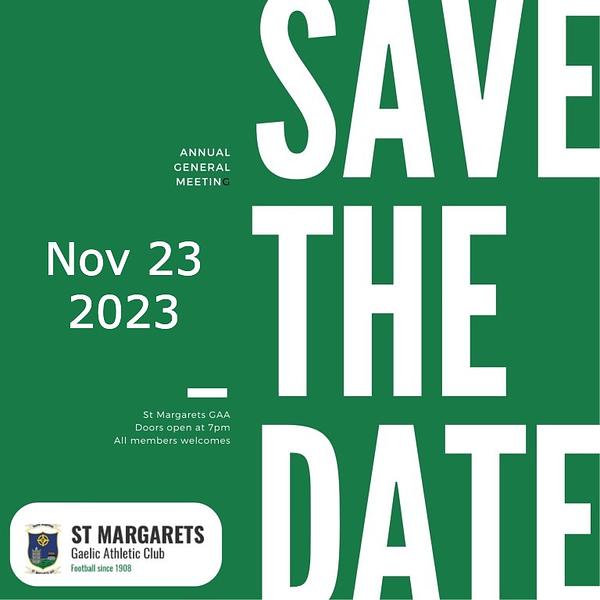 The St Margarets GAA AGM will take place Thurs Nov 23rd 8pm at HQ
