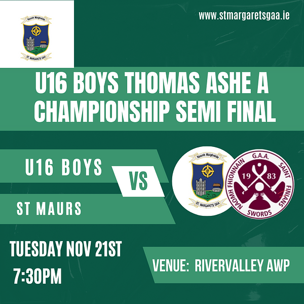 Our U16 Thomas Ashe A are into the Championship B semi final.