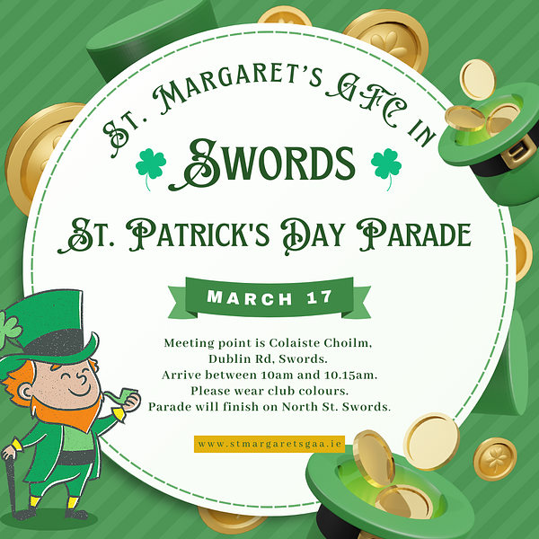 St Margaret's Gaelic Football Club has been invited to take part in the St. Patrick's Day parade in Swords.
