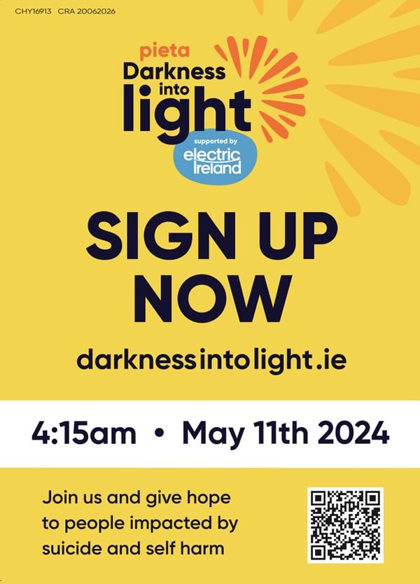 🌟Calling all club members! Join us as we walk from Darkness into Light! 🌅 St. Margaret's GAA Club is proud to participate in the inspirational event on May 11th at 4:15 am at the Complex. Please donate to our fundraising page and support Pieta and people affected by suicide and self harm. Let's come together as a community to support mental health awareness and show solidarity. Every donation makes a difference. See you there! #DarknessIntoLight #CommunitySpirit