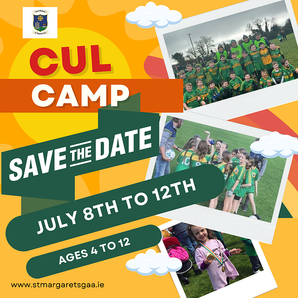 π Mark you diaries for an EPIC week of fun and football at the St. Margarets GFC Football Cul Camp! ππ Save the dates July 8th to July 12th for a week filled with skills, drills, and thrills on the field! Don't miss out on the action-packed camp that's sure to score big with all the children! π