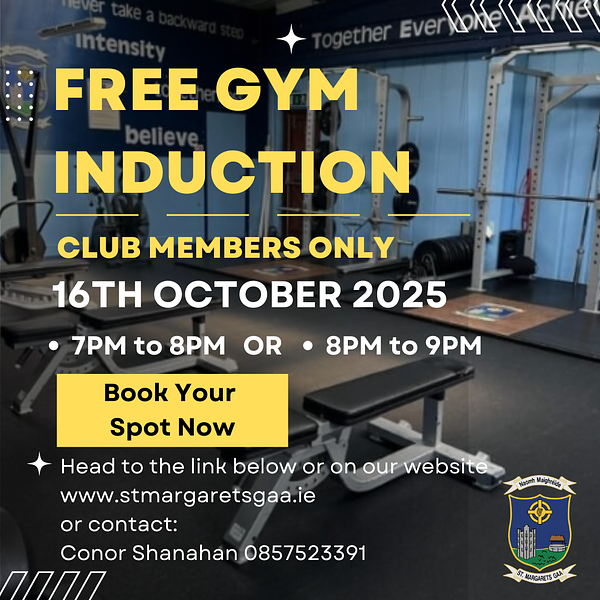 The St. Margaretβs GAA Club Gym isnβt just for footballers. Whether you're pushing for peak performance or simply keeping active, our gym welcomes all members - teens, parents, lifelong supporters.
