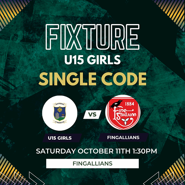 Best of luck to our U15 girls heading to Fingallians today for their Single Code fixture.