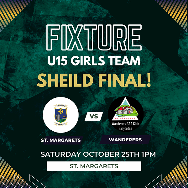 Come along and show your support! ππ #GAA #U15Girls #ShieldFinal #StMargarets