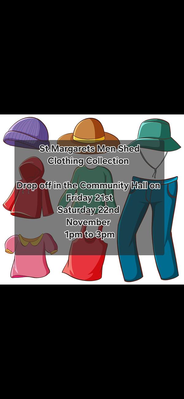 Clothes can be left in on Friday 21st and Saturday 22nd to the Hall from 1pm-3pm.
