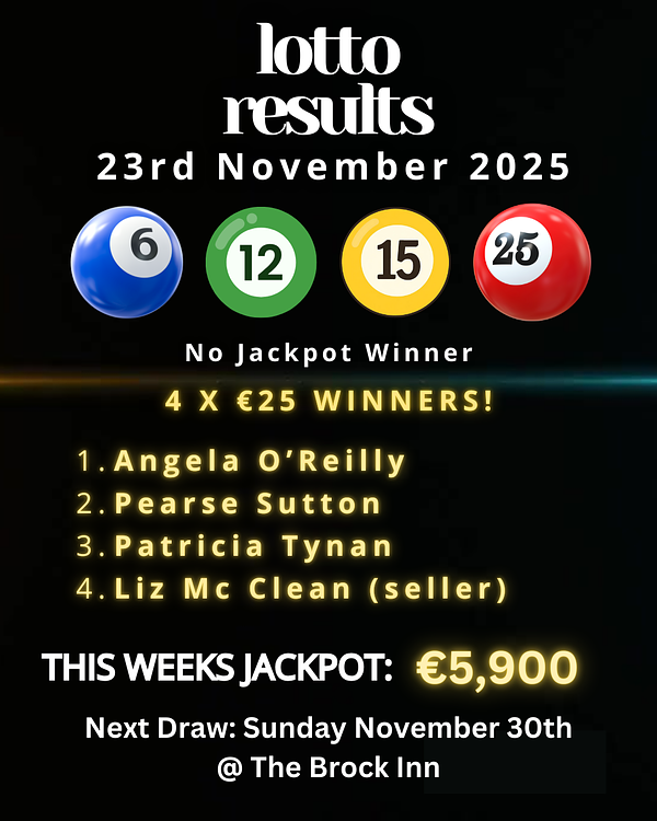 π Weβll be back in The Brock Inn this Sunday for the lotto draw before switching to The Lodge for December & January.