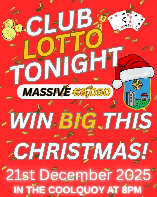 The Lotto Draw will take place this evening at 8pm at the CoolQuoy Lodge