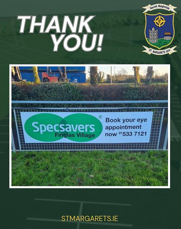 We would like to thank Specsavers Finglas Village for kindly sponsoring a pitch sign.