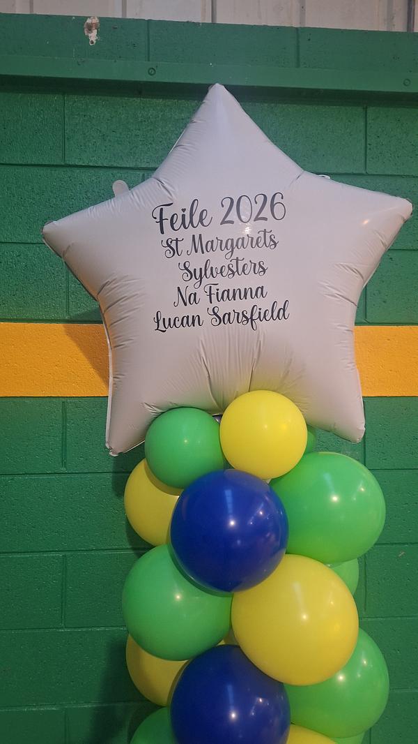 Massive thank you to @hanleys_balloons for our fabulous Féile balloon bouquets. They captured the colours of all four clubs — St Margaret’s, Lucan Sarsfields, Sylvesters and Na Fianna — and they’ve brought serious Féile energy to the place. Roll on tomorrow.