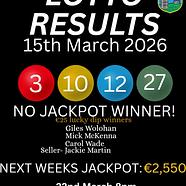 There were no winners of this evenings lotto but congratulations to our weekly winners ...