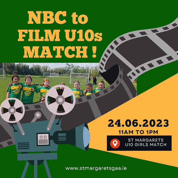 NBC will film our U10 Girls Match v St Brendan's this Saturday June 24th.