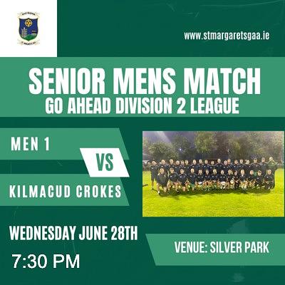 Our senior men play Kilmacud Crokes away on Wednesday night.