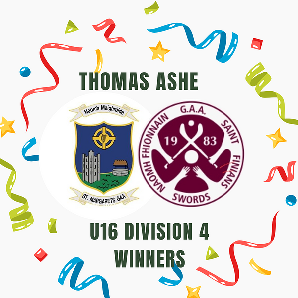 U16 Division 4 Football Champions - Our Thomas Ashe U16 A squad had a fantastic 4.13 to 2.10 win away versus St Mary's, Saggart last Thursday in a very wet and windy Rathcoole.