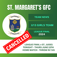 Match cancelled. St. Judes have conceded to our U13 girls team.