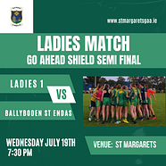 Best of luck to our ladies 1st team in their sheild semi final this evening. Throw in 7:30. ...